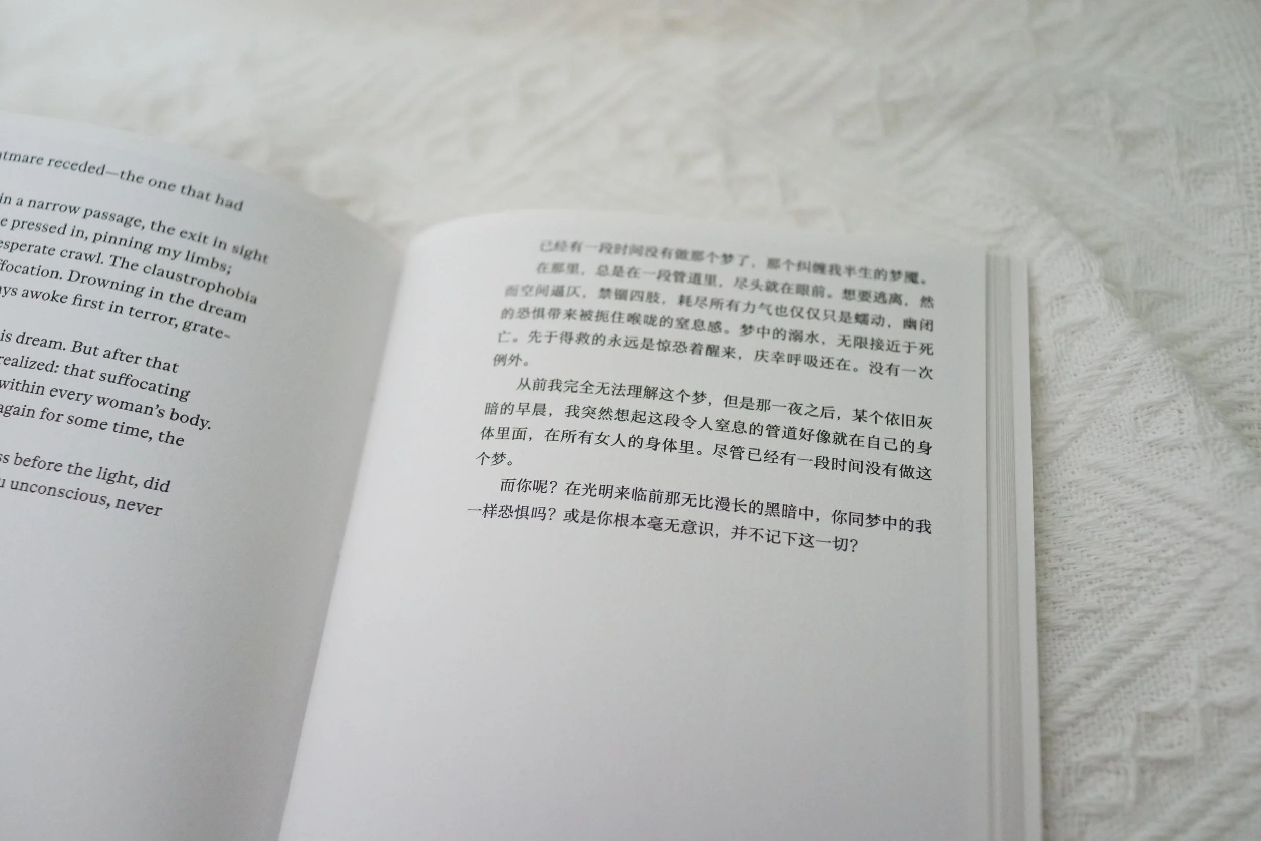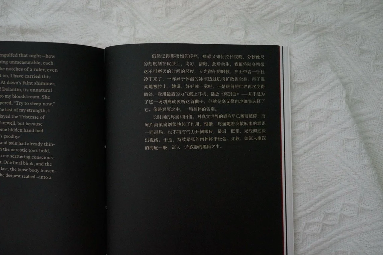 在『0411』中,书页从生育前昏睡的黑色开始,到生产时的鲜红色,再到生产后的白色,渐渐变得明亮起来。生育的过程不可能是安稳的,但是当生命真正降生时,似乎各种庞杂的思绪都抵不过她的明亮。