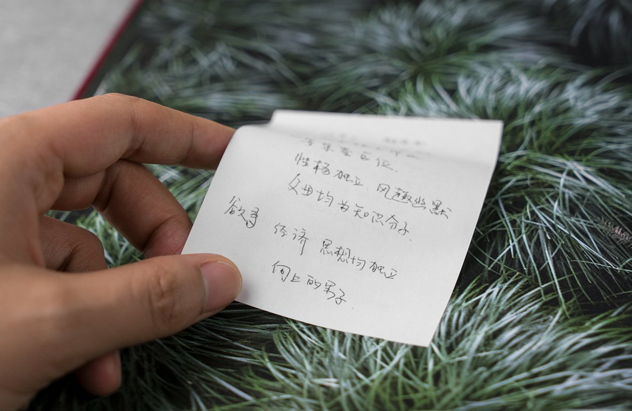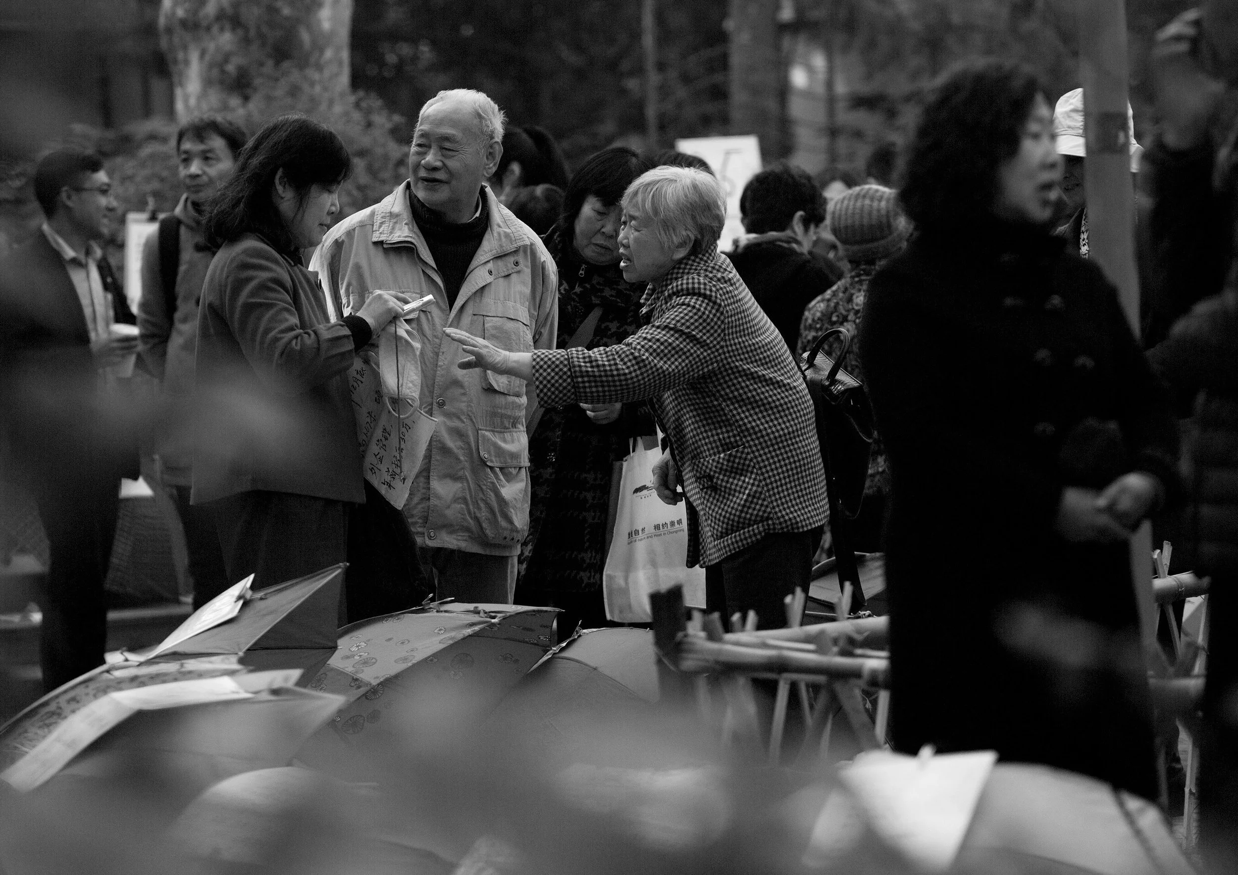 郭盈光(1983-)的『顺从的幸福』记录了她位于上海人民公园相亲角的社会实验。在画册中,母亲和父亲焦心的面孔和招贴启示夹杂在一起,在公园这个自然场域中,形成了一种别样的人造景观。